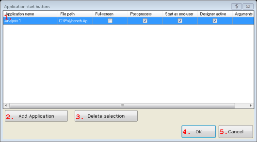 Opens a file-open dialog in which you can search and specify the Polybench applications you would like to add to the table.3. Delete selection