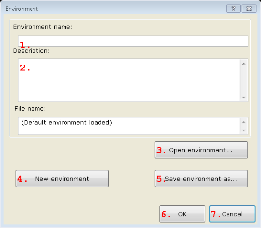 Press to load a new environment. The previous environment has been saved. If you press OK afterwards, you will be asked to save the new environment. If you don't do that, the data manager will have to be newly set up again.5. Save environment as...