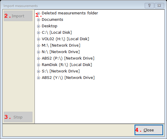 The folder browser only shows locations on your disks, network drives and removable storage mediums, that may contain relevant data. If patients or measurements are found, they are shown in green or yellow, in which case they can be imported.