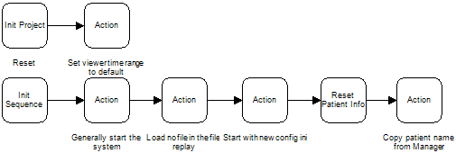 Polybench offers the possibility to execute a series of actions at once. This is called an action sequence. An action sequence uses special operators and can be started using the action ACTIONSEQUENCE ("ACTIONSEQUENCE"). An important property of action sequences is that the actions are executed in the order they appear in the sequence.The next figure shows an example of two action sequences. An action that would call the second action sequence would have the following settings: