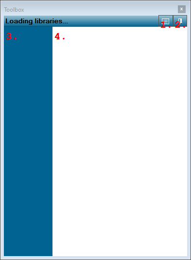Note: The first time you open the Toolbox it will load all component data, which may take a few seconds time. The next time you open the Toolbox, it opens immediately.