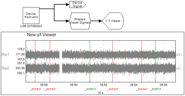 If you application uses multiple data sources (multiple devices, or a device combined with signal generators or file replays), and those data sources should be combined in calculations, then you need to set the Synchronize property of the device operators to True. This is necessary, because then all data sources must use the same time system.