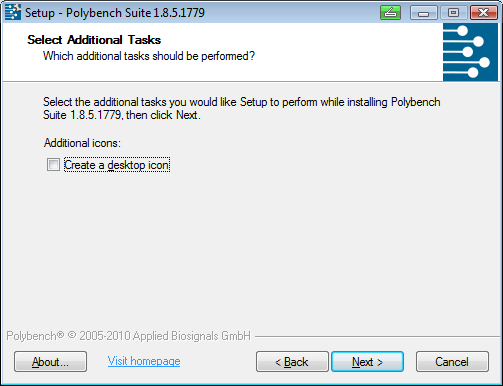 In the next screen you can select if you want to create a desktop icon. Select and then Click <Next>.