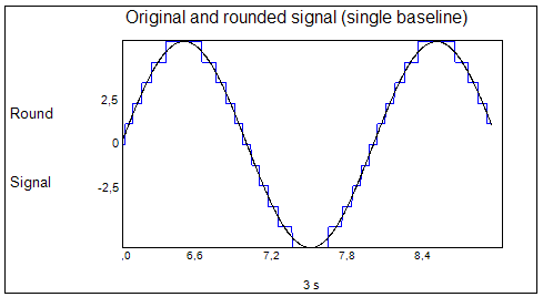 Use this operator to convert floating point input sample values from all channels to rounded values with a specified precision. The rounding operator uses midpoint rounding towards infinity, so 2.4 becomes 2 and 2.5 becomes 3 (if the Digits property is set to 0).Operator ports