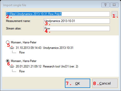 Using this dialog, you can import a single file as part of the measurements of the selected patient.