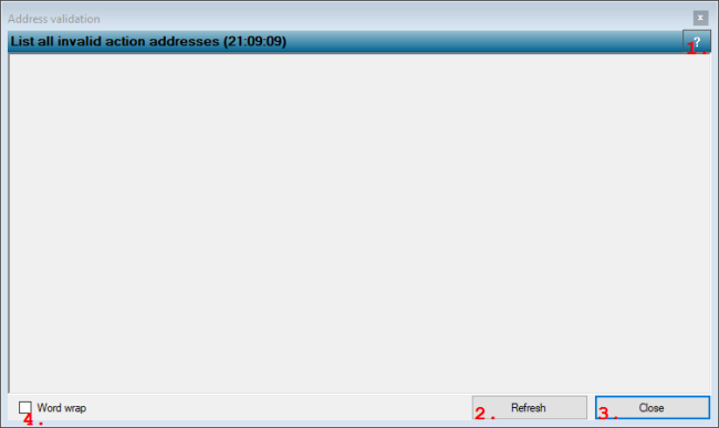 For each address that seems to be invalid, the object where this address reference was found is shown. The object is shown as a link. If you click on it, the designer points to the object in your design and opens the properties dialog of that object.